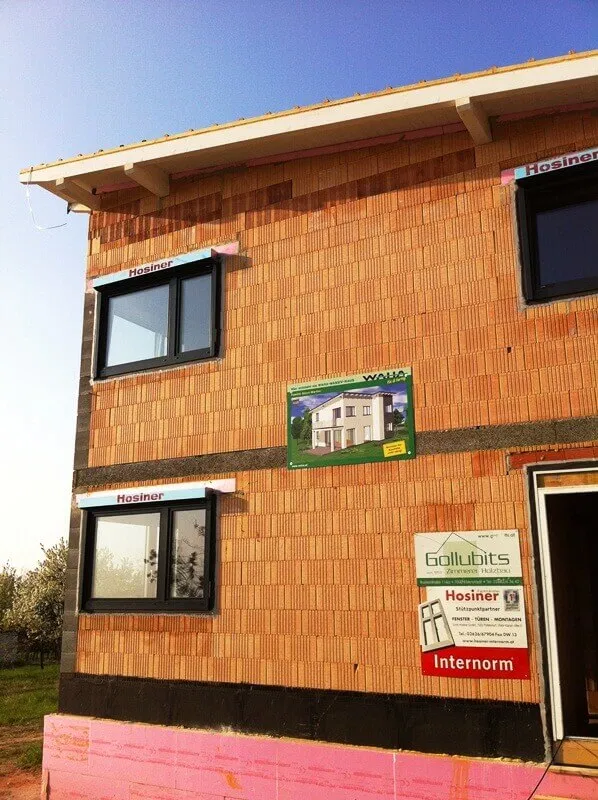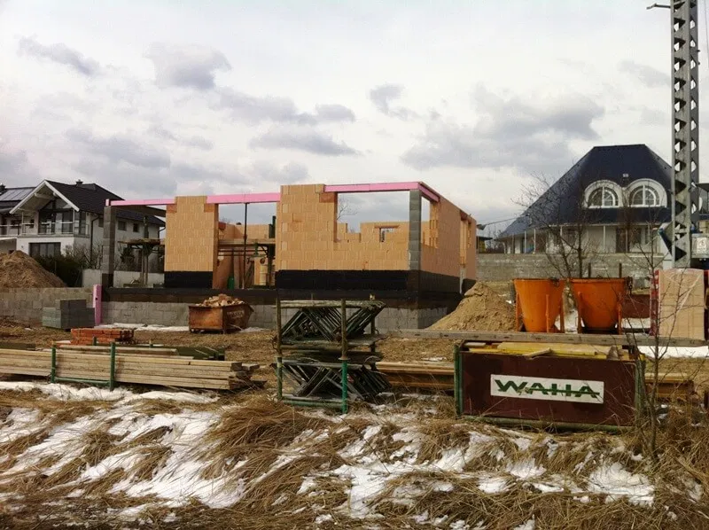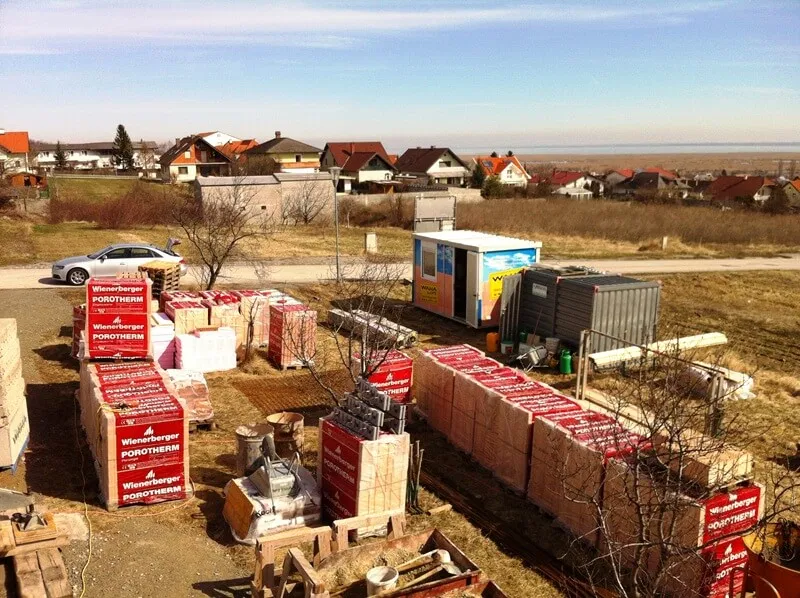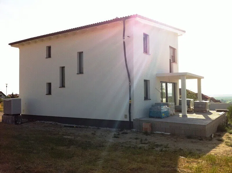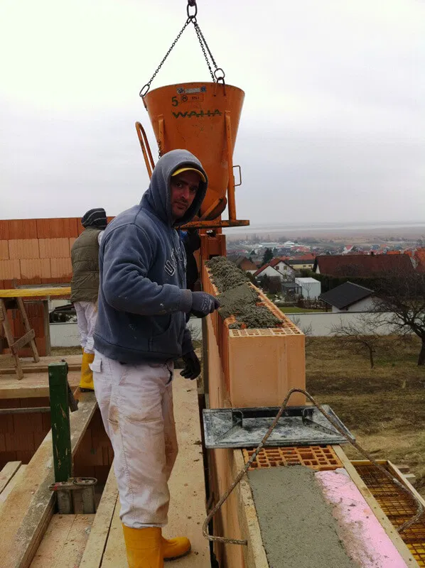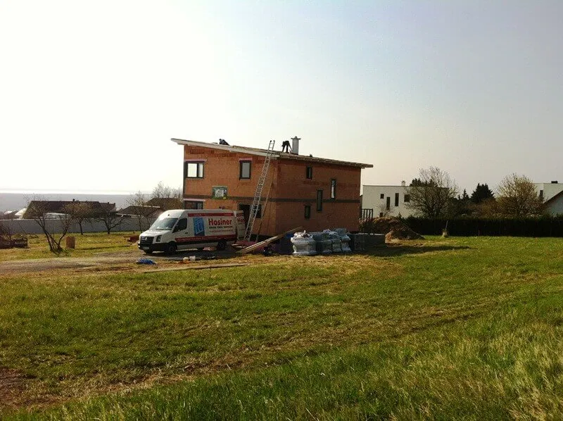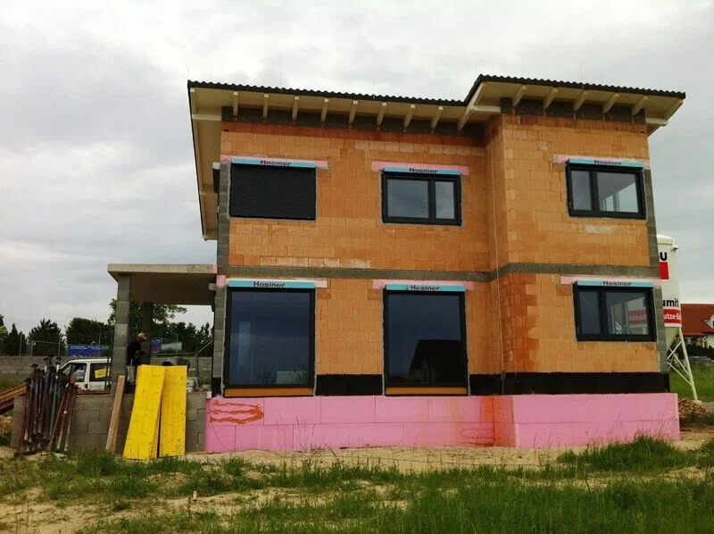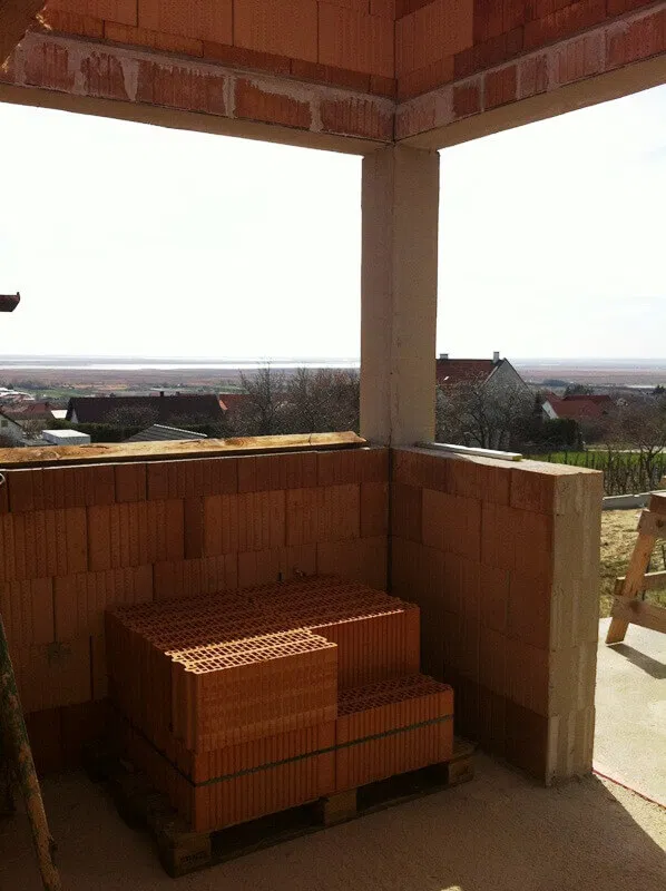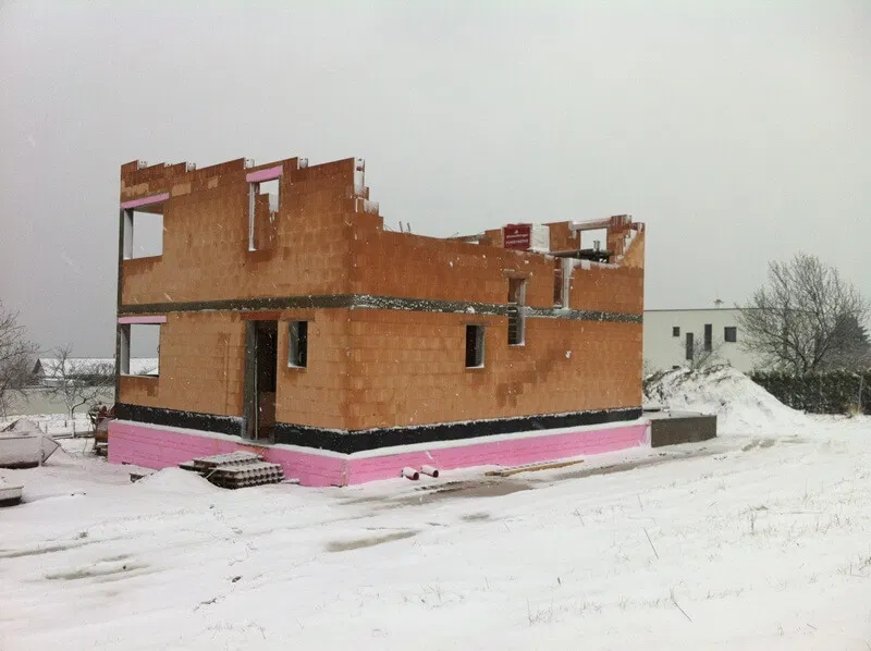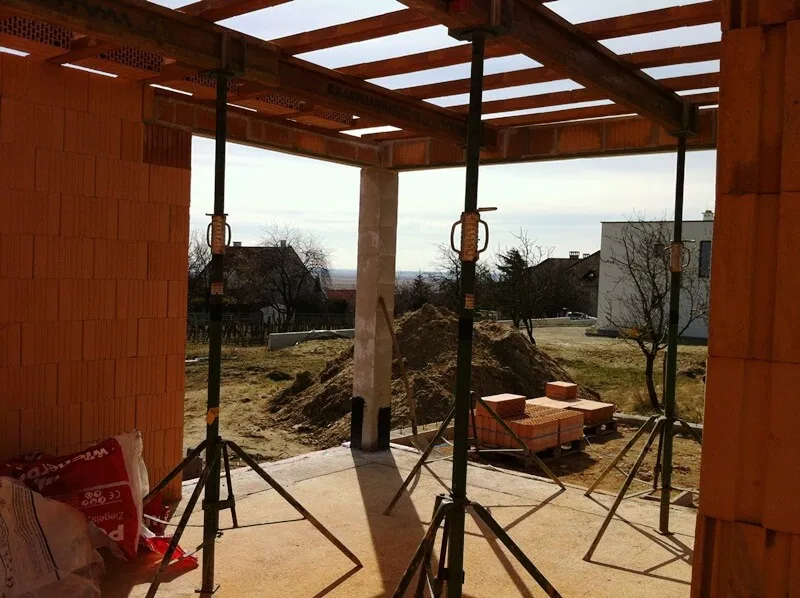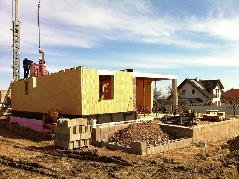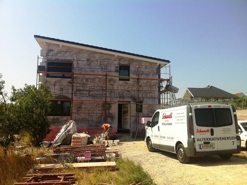 Um das zu erreichen, wurden die  Außenwände an den Giebelmauern und die Zwischenwände im Obergeschoß fertiggestellt. Um einen optimalen Arbeitsablauf zu gewährleisten wurde bereits nebenbei mit dem nächsten Einfamilienhaus in Au am Leithaberge begonnen.