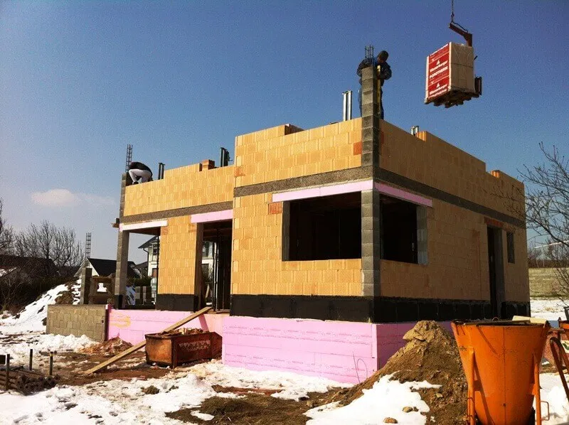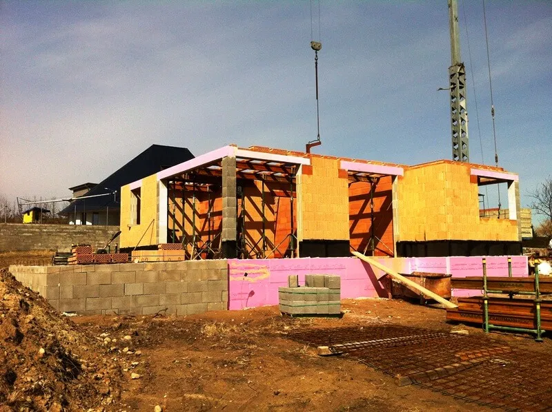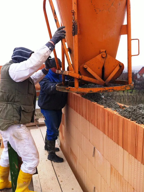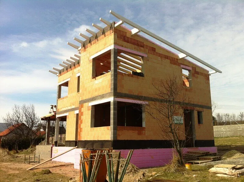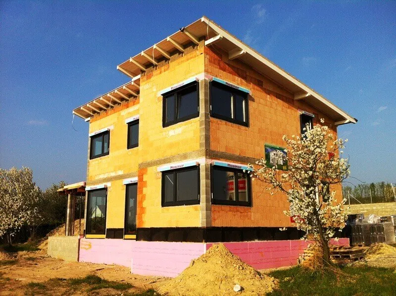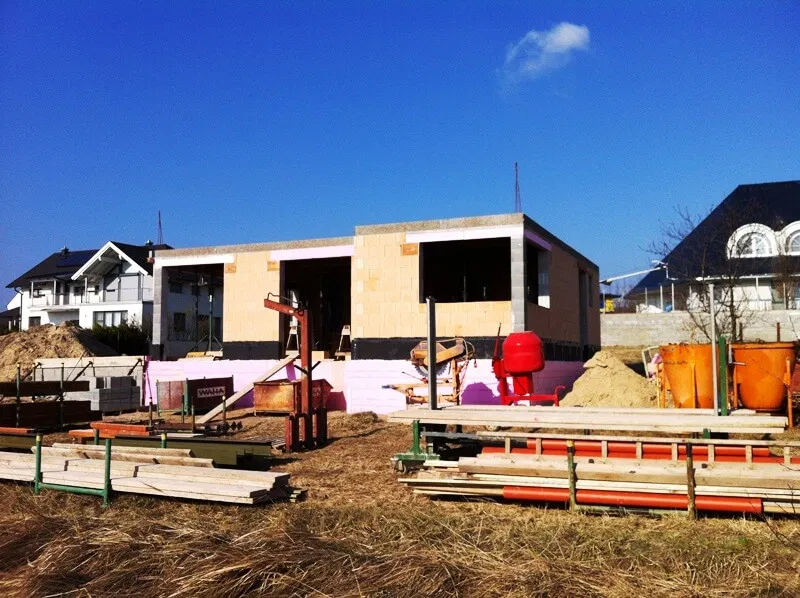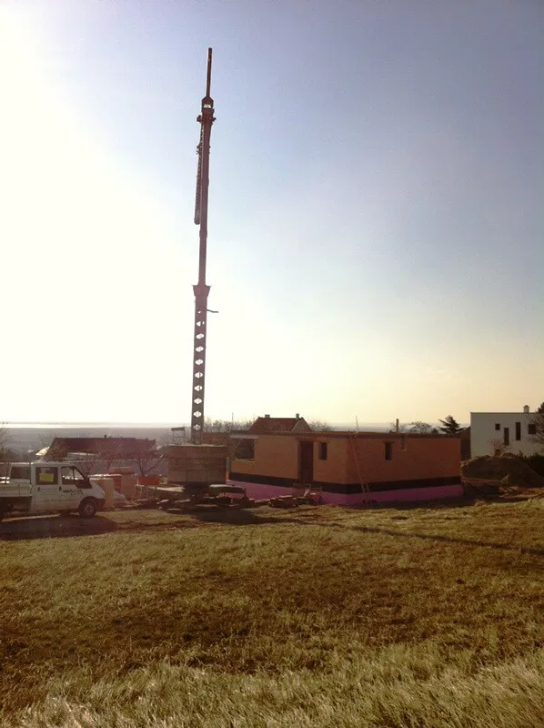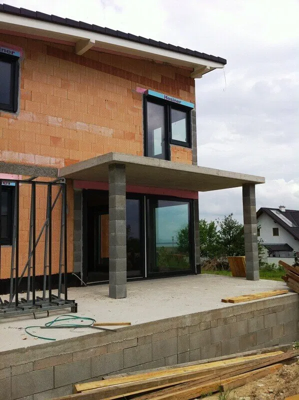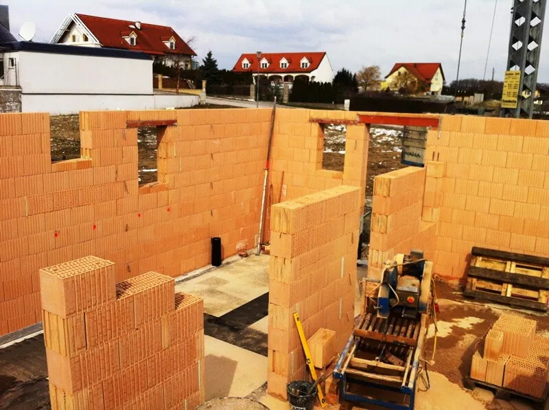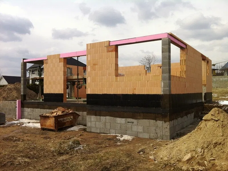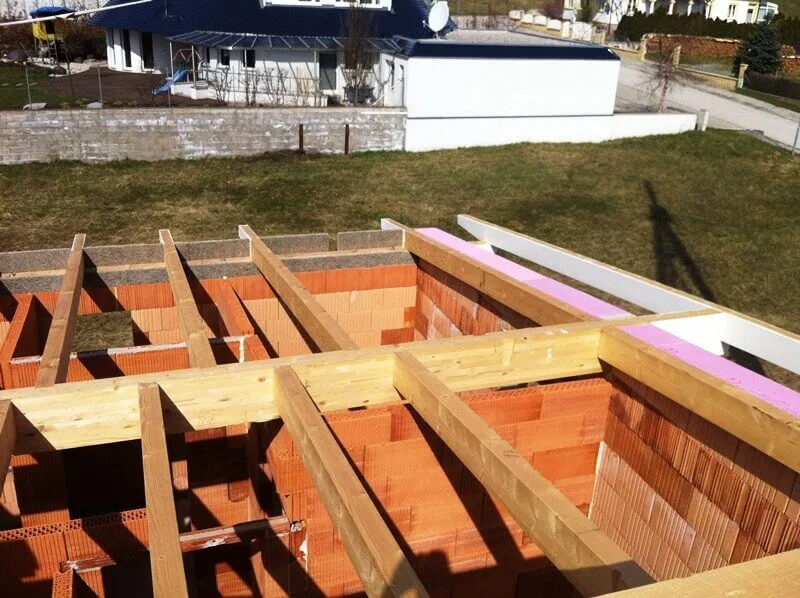 Um das zu erreichen, wurden die  Außenwände an den Giebelmauern und die Zwischenwände im Obergeschoß fertiggestellt. Um einen optimalen Arbeitsablauf zu gewährleisten wurde bereits nebenbei mit dem nächsten Einfamilienhaus in Au am Leithaberge begonnen.
