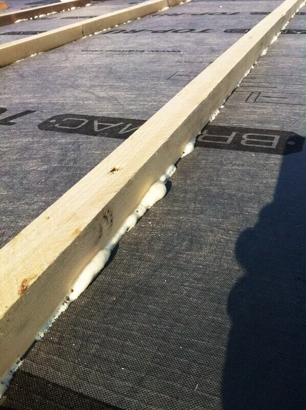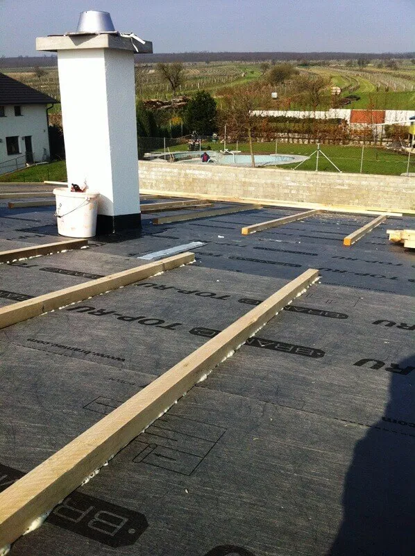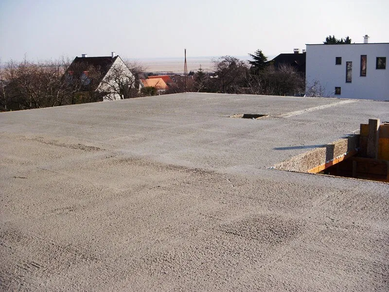 Da ist gutes Teamwork gefragt! Eine weitere Herausforderung war die sehr moderne Dachform mit nur 7° Dachneigung die nicht mit Blech sondern mit Dachziegeln ausgeführt wird. Hier bedarf es großer Sorgfalt bei den Arbeiten, sowie geschulte und für diese Dachausführung zertifizierte Arbeiter. Alle Vorarbeiten für die Verlegung der Dachziegel sind erledigt,  somit kann nächste Woche eingedeckt werden. Auch die Fenster und die Terrassentüren wurden eingebaut unter besonderer Berücksichtigung der Winddichten Ausführung. Zu guter Letzt wurde noch auf die Bodenplatte 1 Lage Flämmpappe aufgebracht damit mit den Innenarbeiten begonnen werden kann.