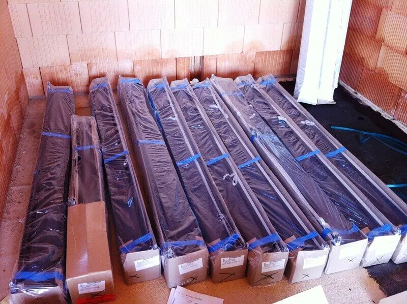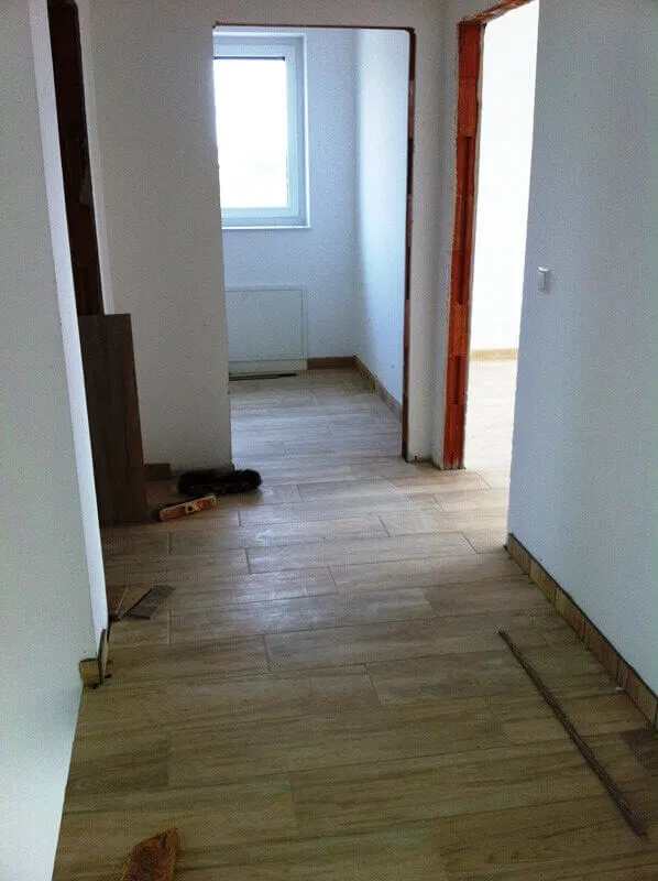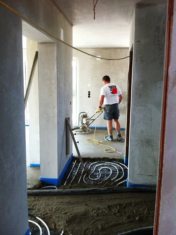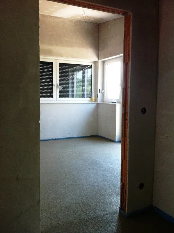 Sobald die Heizung in Betrieb genommen wird, wird der Estrich ausgeheizt. Dies ist sehr wichtig damit der Bodenleger seine Beläge auf einen trockenen Estrich legen kann! Als Nachweis bekommt er das Ausheizprotokoll. Zeitgleich kann der Maler mit dem ausmalen beginnen. Sobald fertig ausgemalt ist beginnt der Bodenlager mit seinen Arbeiten. Anschließend daran werden die Innentüren montiert.