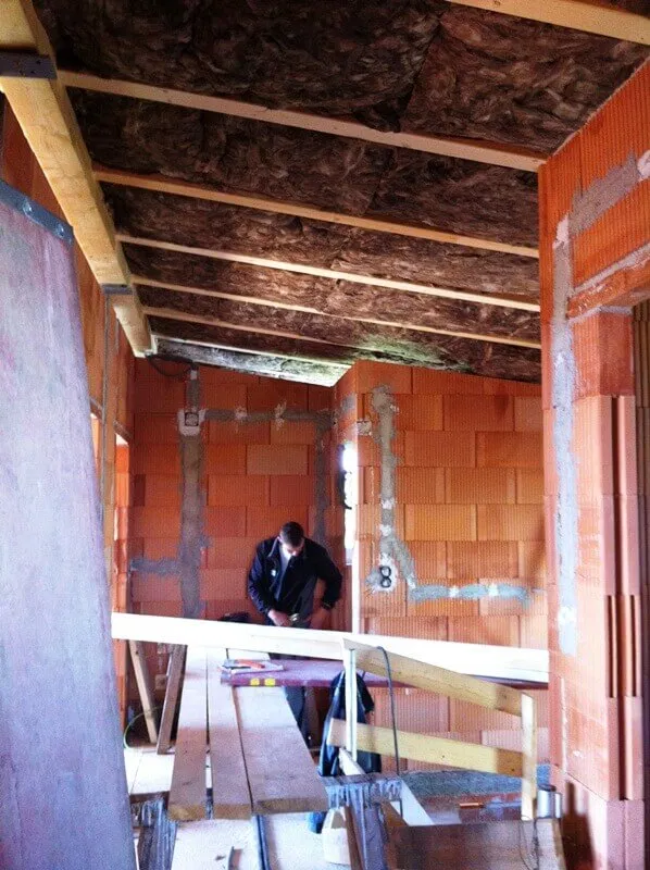 Es wurde die ganze Woche fleißig gestemmt, gebohrt, geschnitten und verlegt. Daher sind Elektriker und Installateur nun schon fast fertig mit der Rohinstallation. Jetzt beginnen die Vorarbeiten für den Innenputz, denn bevor dieser kommt müssen noch die Innenfensterbänke montiert, die gestemmten Schlitze geschlossen und der Innenausbau des Dachstuhls gemacht werden. Es wartet noch viel Arbeit auf uns.