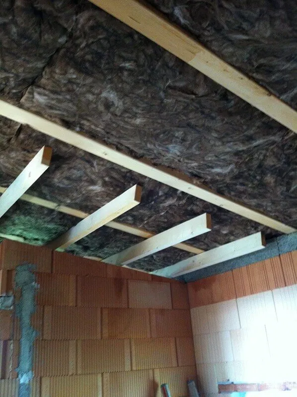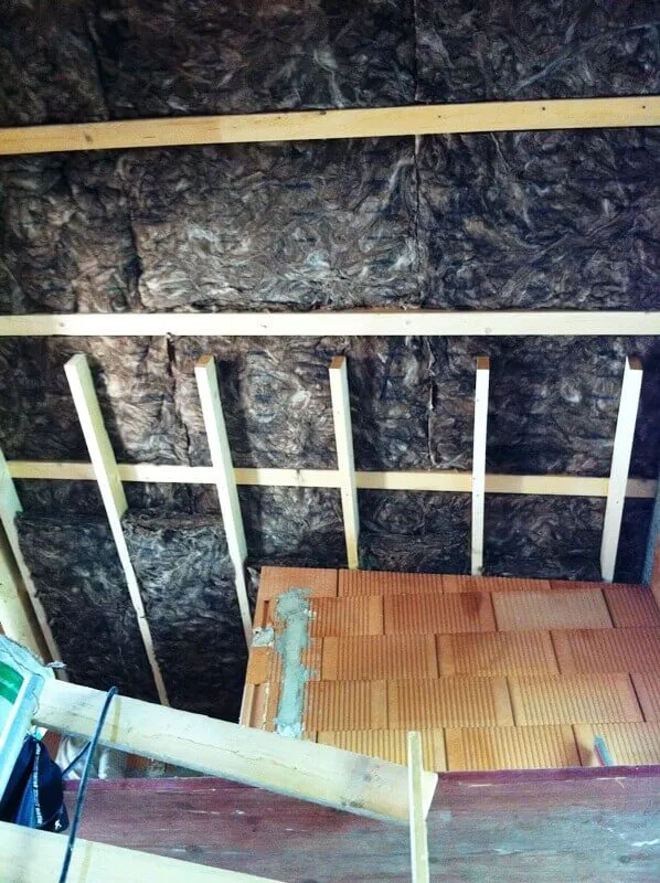 Fazit dieser Woche: Alle Ziele erreicht. Wir sind bereit für den Innenputz! Denn die Arbeiten gingen sehr rasch voran. Die Zimmerer dämmten das Dach mit 32cm Mineralwolle, indem sie diese, 2-lagig kreuzweise einbauten. Danach wurde die Dampfbremse eingebaut, wo sehr großes Augenmerk auf die ordentliche Verklebung, sowie auf den dichten Anschluss zwischen Folie und Mauerwerk bzw. Kamin gelegt wurde.
