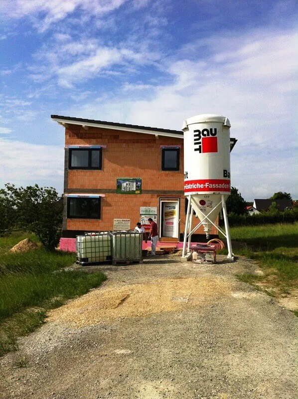In den letzten Wochen ist viel passiert auf der Baustelle, denn der Einzugstermin rückt immer näher! Hier ein kleiner Auszug der Fortschritte: Der Maler hat fertig ausgemalt, der Technikraum ist fertig verfliest, die Heizung wird gerade installiert, die Fassade wird gerade ausgeführt und der Estrich wird ausgeheizt. Daher ist trotz großer Hitze ganz schön viel los auf der Baustelle.