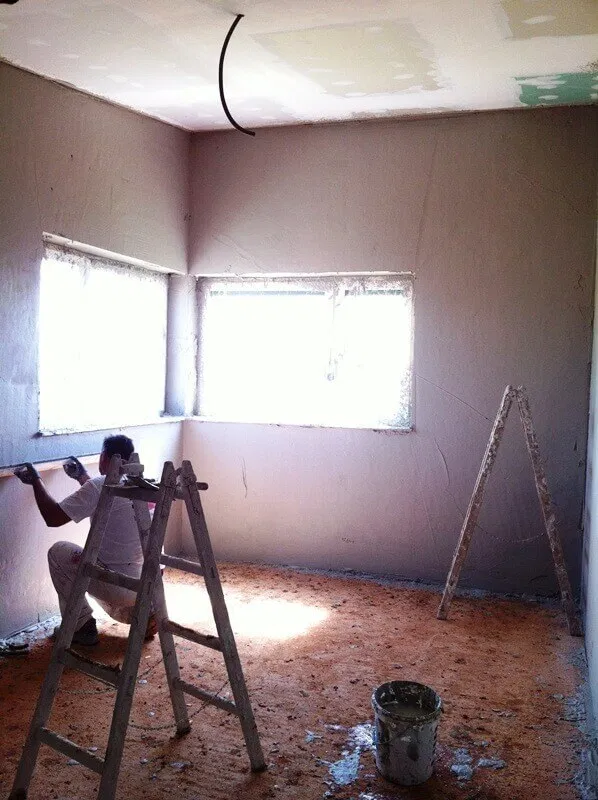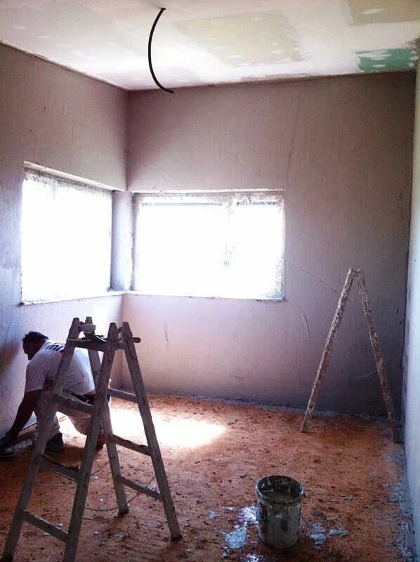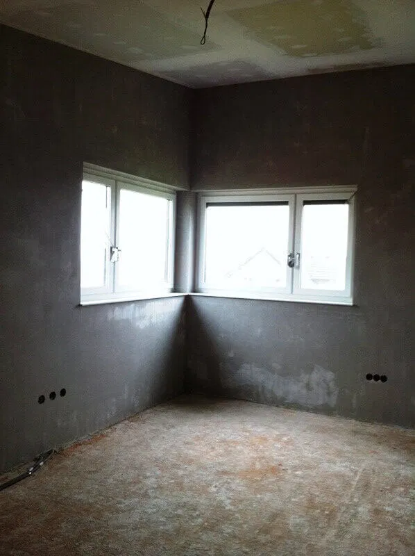 Der Innenputz ist fertig, die Baustelle ist zusammengeräumt. Es sieht einfach toll aus! Die Qualitätskontrolle des Putzes ( Ebenflächigkeit, Abschlüsse bei den Fenstern etc.)  erfolgte gemeinsam mit den Arbeitern auf der Baustelle. Somit konnten diverse Kleinigkeiten sofort behoben werden. Der Elektriker hat diese Woche alle Steckdosen und Schalter freigelegt und die gesamte Verkabelung eingezogen.