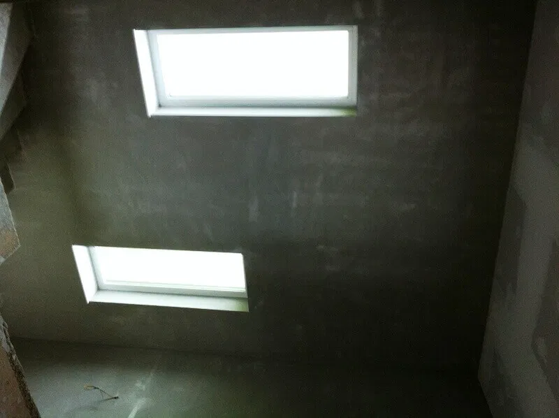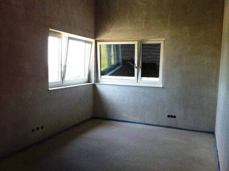 Der Innenputzer war sehr fleißig, denn Anfang nächster Woche sind die Putzarbeiten abgeschlossen! Es wurde ein Kalk-Zementputz in den Feuchträumen (WC, Bad ) und ein Kalk-Gipsputz in den Wohnräumen verwendet um ein angenehmes Raumklima zu erzeugen. Ein wichtiges Detail war das Einlegen von Gewebebahnen in den Putz,  um Spannungen und Risse in den Bereichen des Materialwechsels zu vermeiden.