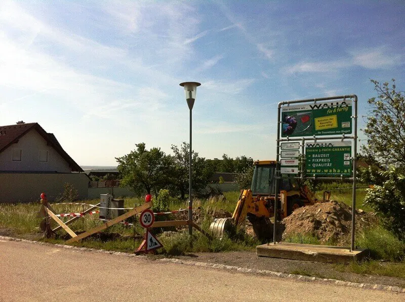 07:00 – 09:00 Grabungsarbeiten für Stromzuleitung, fertiglegen des Schmutzwasserkanals