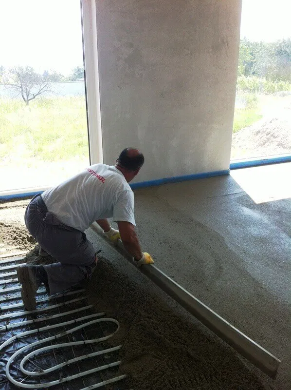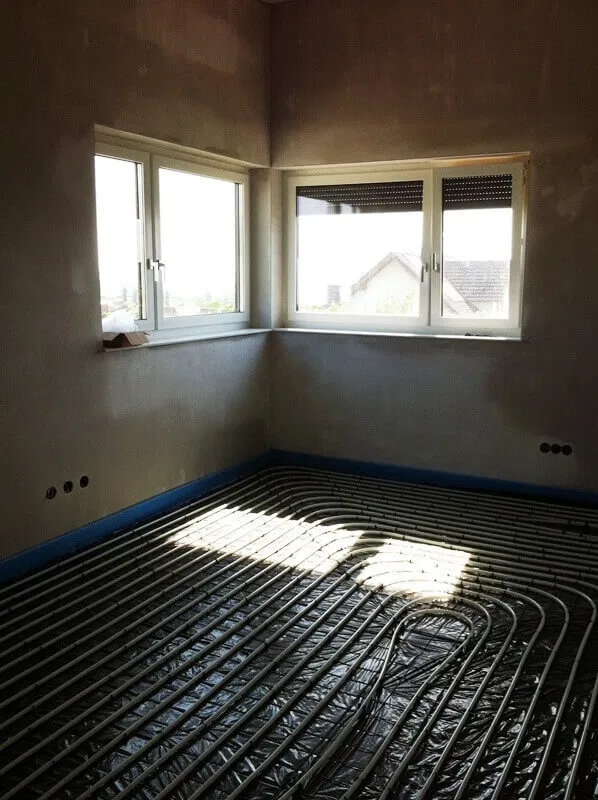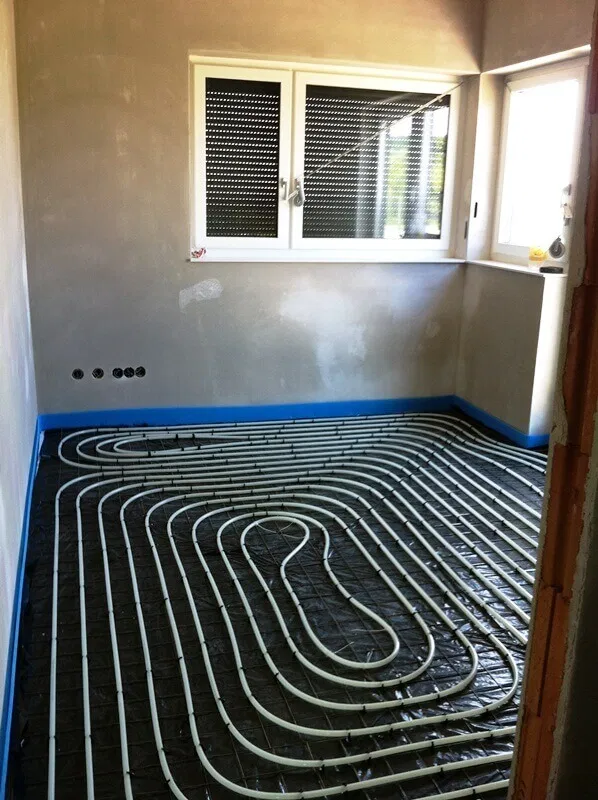 Ziele für nächste Woche: Estrichleger: Verlegung der Wärme und Trittschalldämmplatten, Installateur: Verlegen der Fußbodenheizung