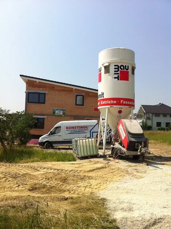 Ziele für nächste Woche: Innenputzer – Baustelle zusammenräumen, Silos abtransportieren, Elektriker: Freilegen der Schalter/Steckdosen, Kabeleinziehen, Bodenleitungen legen, Installateur: Bodenleitungen legen