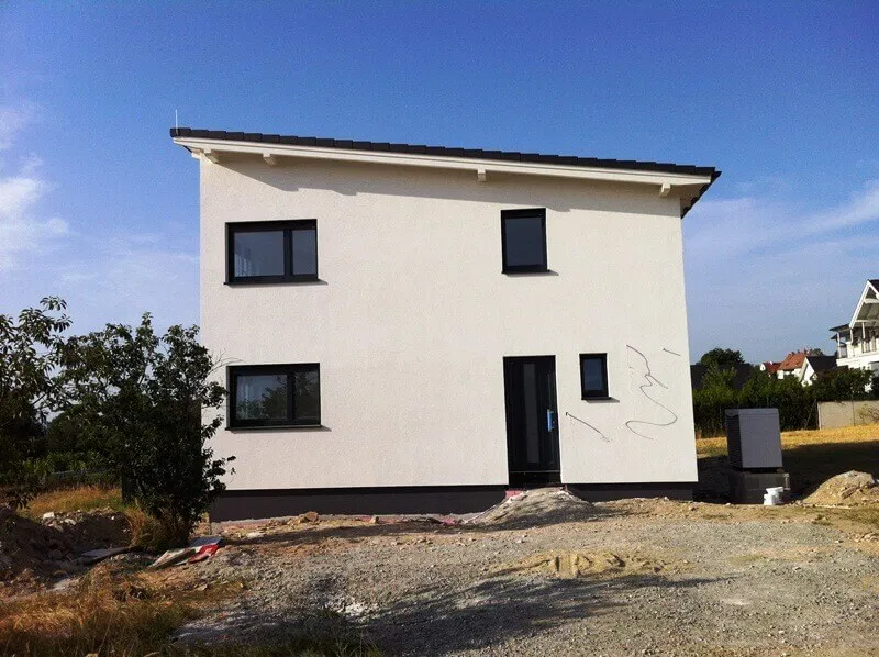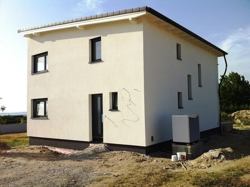 Die Heizung wurde fertig installiert und das Außengerät der Wärmepumpe aufgestellt. Die Fassade wurde am Mittwoch fertiggestellt und die provisorische Baustellentür wurde gegen die originale Hauseingangstür getauscht. Somit ist sind alle Arbeiten an der Gebäudehülle abgeschlossen und das Haus sieht echt toll aus! Nun wird mit den Innenarbeiten begonnen.