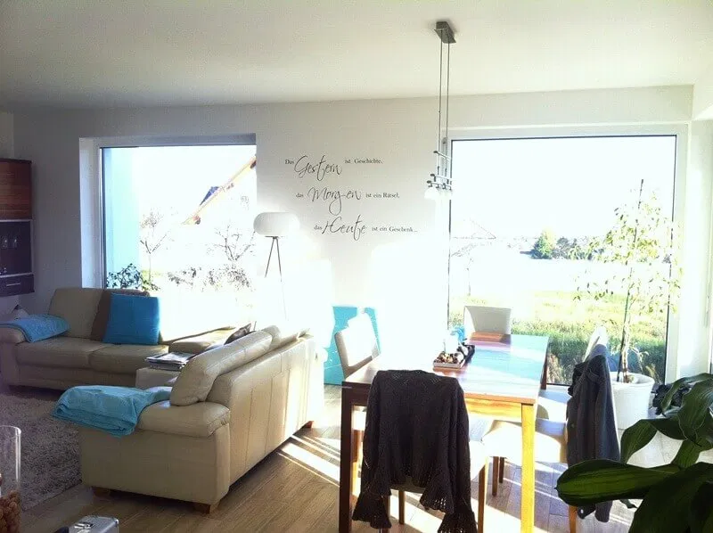 Die Schlüsselübergabe fand am 31.10.2013 im neuen Haus statt. Die Bauherren bekamen vom Bauleiter nun das Haus offiziell übergeben. Bei diesem Termin wurde das ganze Gebäude nochmal kontrolliert ob etwas ausgebessert werden muss oder noch Leistungen fehlen. Da die Bauherren schon seit September im neuen Haus wohnen, konnte ich mir auch gleich die Gestaltung und Einrichtung der Räume ansehen.